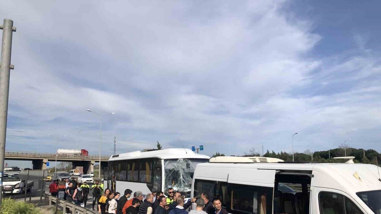 Tekirdağ Çorlu’da mesaiden çıkan işçileri taşıyan 4 servis minibüsünün çarpıştığı zincirleme kazada 2 kişi yaralandı.