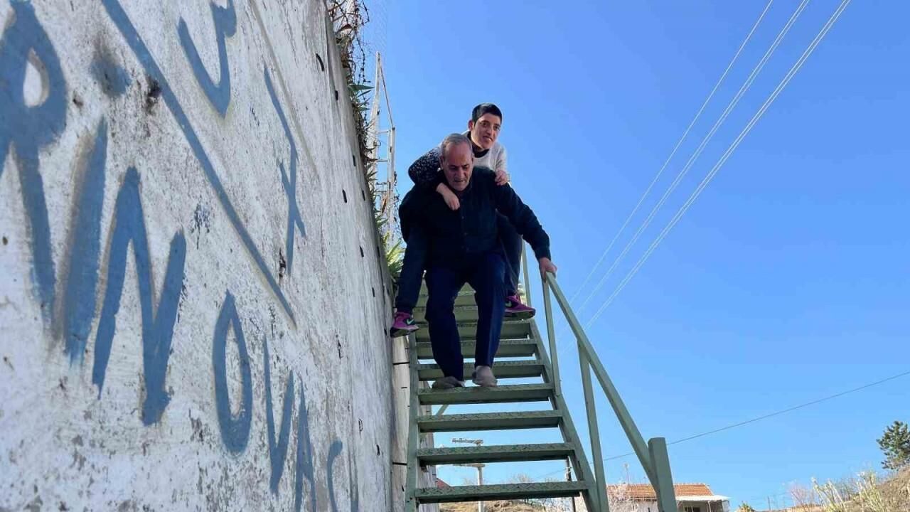 Eskişehir’de yüzde 90 zihinsel engelli 36 yaşındaki kızını ayağındaki platine rağmen her gün sırtına alıp metrelerce merdiven çıkıp inen 73 yaşındaki Nurettin Toprak çözüm beklerken, “Sokağa çıkacağımız zaman evin konumu bir tepenin üstü. Mecburen zorlanıyoruz. Bir ara ben düştüm. Çocuğumun kafasında yara izleri de var, benim de kaburgam kırıldı” dedi.