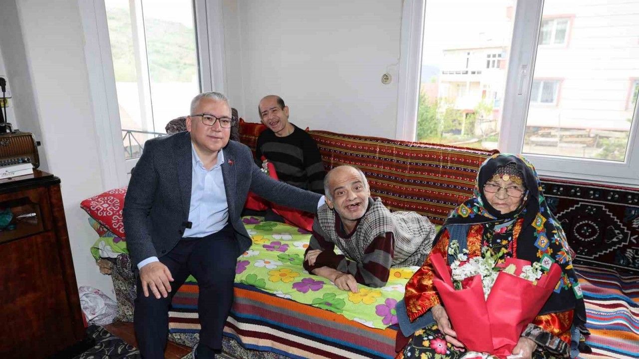 Sivas Valisi Yılmaz Şimşek, 60 ve 53 yaşındaki iki engelli oğluna bakan 93 yaşındaki Gülsüm Karamuk’u ziyaret ederek Anneler Günü’nü kutladı.