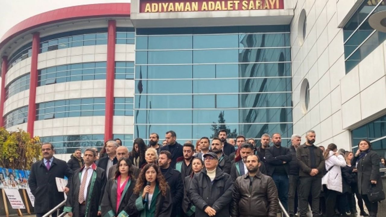 Adıyaman Adliyesi önünde düzenlenen basın açıklamasına çok sayıda avukat katılım sağlarken açıklama Avukat Ayşenur Altuntaş tarafından okundu.