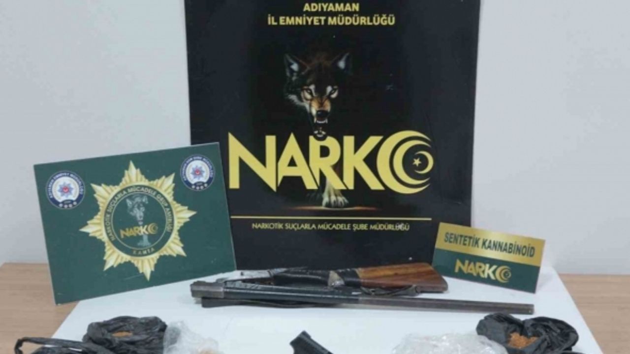 Edinilen bilgilere göre, İl Emniyet Müdürlüğüne bağlı Narkotik Suçlarla Mücadele Şube Müdürlüğü ekiplerince Kahta ilçesi Hürriyet Mahallesi’nde M.K. ve N.K. isimli şahısların adreslerine operasyon yapıldı. Operasyonda 7 paket halinde 116 gram bonzai, 1 adet av tüfeği, 1 adet tabanca ve 6 adet fişek ele geçirildi. Gözaltına alınan şahıslar sorgulanmak üzere polis merkezine götürüldü.