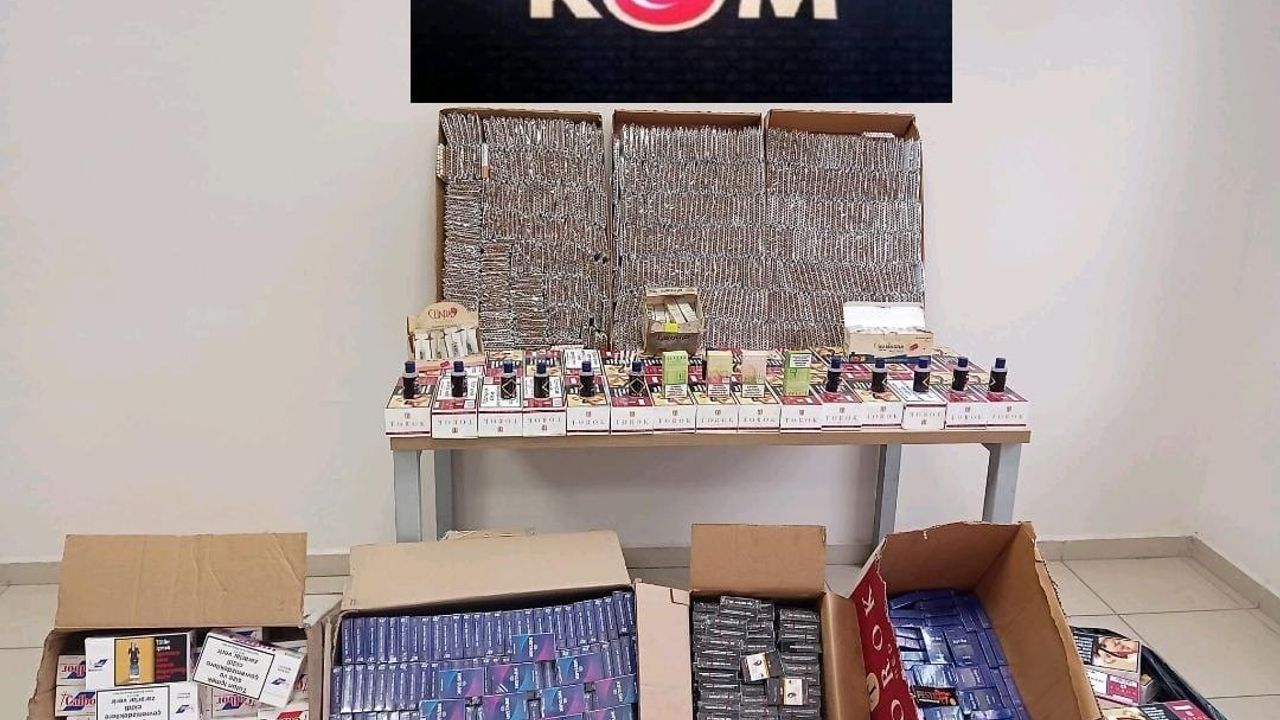 Afyonkarahisar İl Emniyet Müdürlüğü Kaçakçılık ve Organize Suçlarla Mücadele Şube Müdürlüğü yapılan çalışmalar kapsamında Bolvadin’nde bir işyerinde arama yaptı. Yapılan aramada; 820 paket sigara, 20 bin 800 adet boş makaron, 12 bin adet dolu makaron, 96 adet cinsel içerikli ürün, 77 adet elektronik sigara likiti, 4 adet elektronik sigara ele geçirdi. A.K., isimli şahsa adli işlem uygulandı.