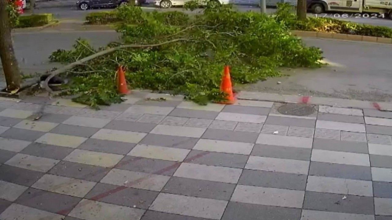 Olay, merkez Vali Fahri Bey Caddesi üzerinde meydana geldi. Edinilen bilgilere göre, kaldırımda bulunan ağacın dalı kırılarak yola düştü. Bu sırada cadde üzerinde herhangi bir aracın geçmemesi, olası bir kazayı önledi. Yola devrilen ağaç dalları vatandaşlar tarağından yol kenarına çekilirken, ekipler ağaç dallarını cadde üzerinde kaldırıldı. O anlar bir iş yerinin güvenlik kameralarına yansıdı.