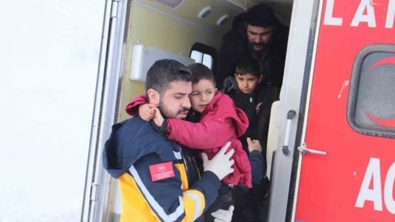 Ağrı’nın Hamur ilçesine bağlı uzak bir köy olan Yuvacık köyüne ailenin biri 9 aylık olmak üzere 4 çocuğu rahatsızlandı. Yolun kar ve tipi nedeniyle ulaşıma kapalı olmasından dolayı hastaneye gidemeyen aile durumu 112 Acil Çağrı Merkezine bildirdi. İhbar üzerine hemen harekete geçen sağlık ekipleri, paletli ambulansla yola çıktı. 6 saatlik çalışmanın ardından köye ulaşan ekipler, Miran (9), Barış (6), Helin (3) ve 9 aylık bebek Mert Ali bebeği kendilerini bekleyen normal ambulansa aldı.
