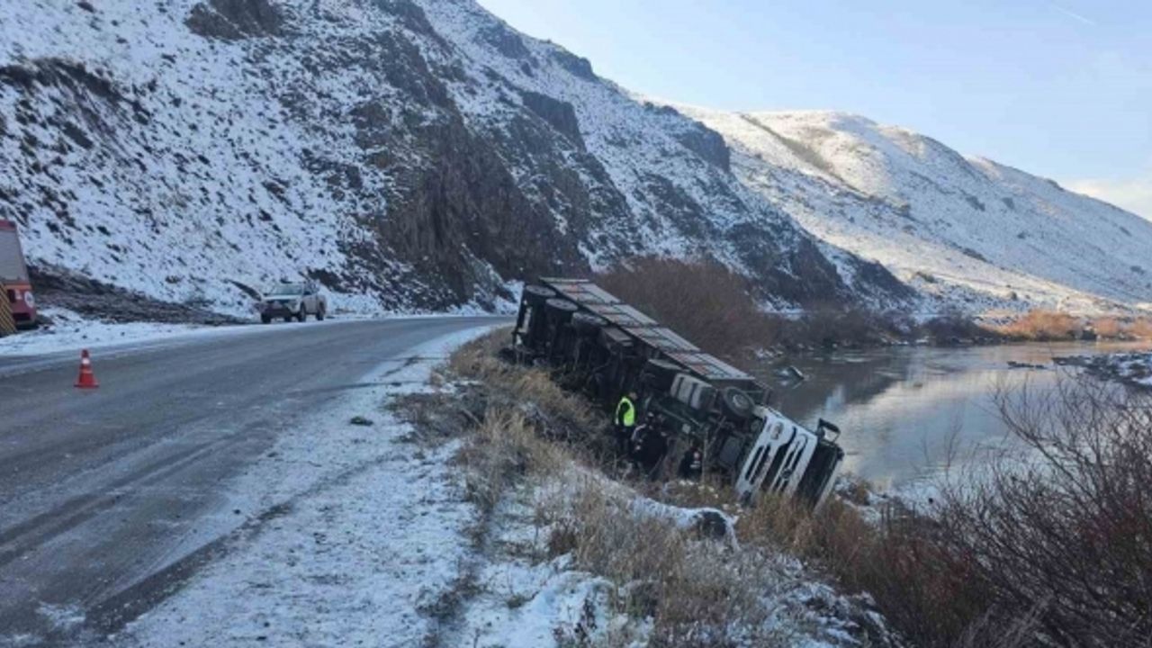 Ağrı’da meydana gelen trafik kazasında, devrilen tırın sürücüsü hayatını kaybetti.