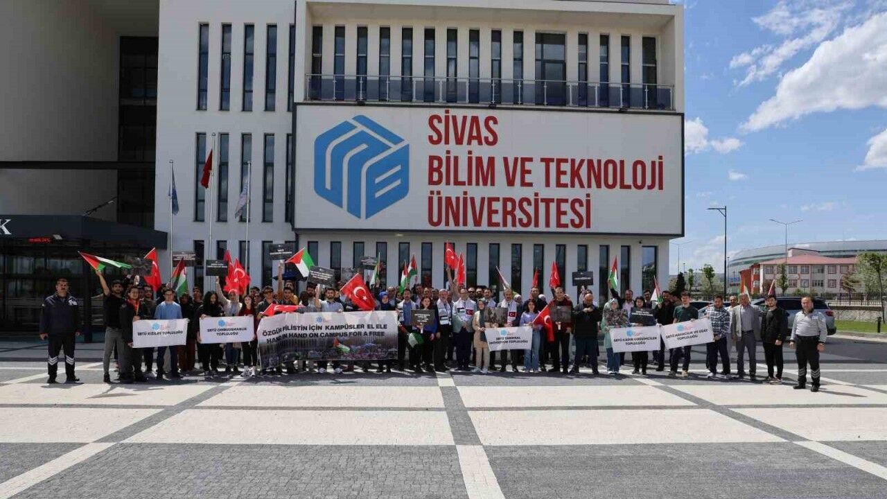 Sivas Bilim ve Teknoloji Üniversitesi’nde (SBTÜ) öğrenci ve akademisyenler İsrail’in Filistin’e uyguladığı zulüm protesto edildi. Akademisyen ve öğrencilerin katıldığı protestoda Filistin’e destek mesajları verildi.