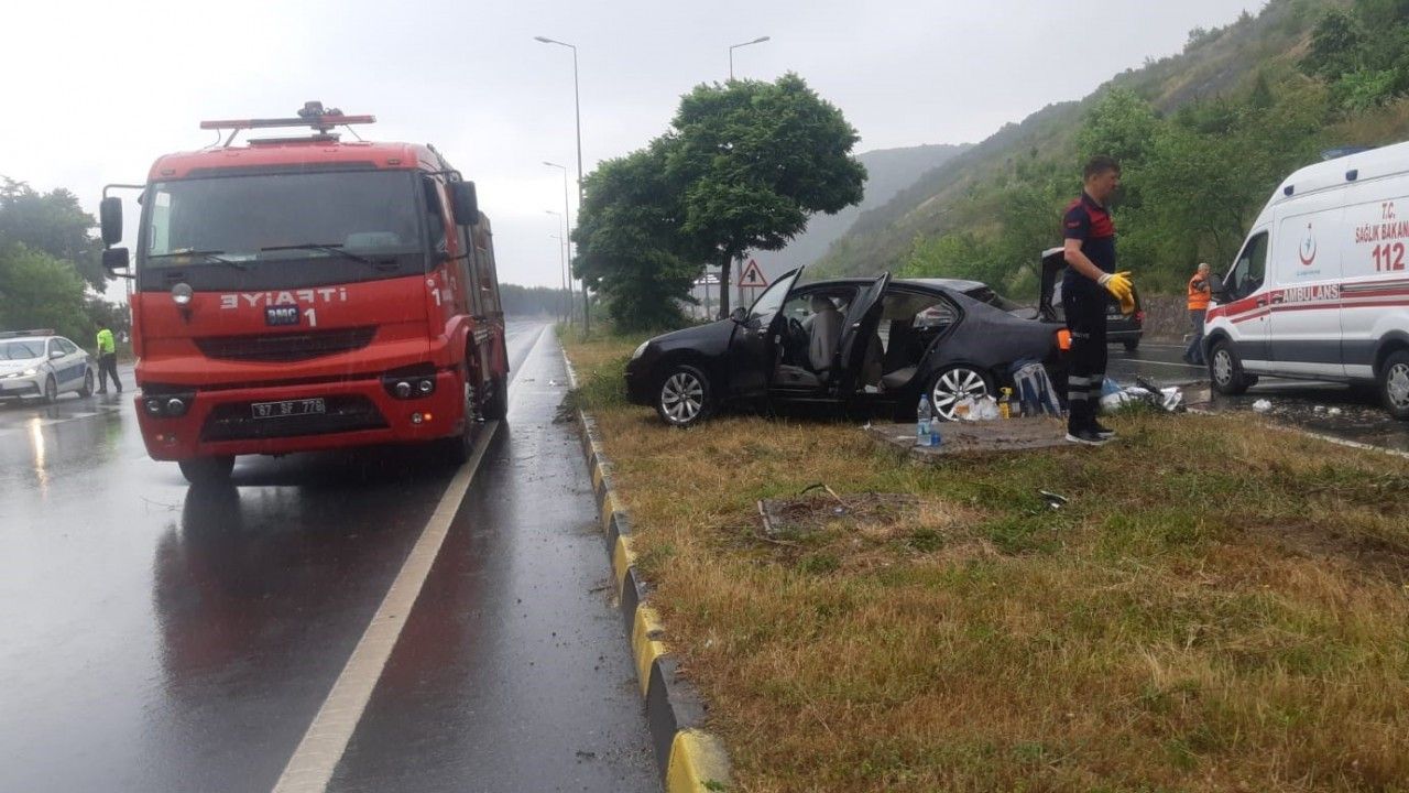Zonguldak’ın Alaplı ilçesinde kontrolden çıkan otomobil refüje çarparak durabildi. Kazada iki kişi yaralanırken; sürücüler yolu ihbar üzerine kazaya giden itfaiye ekiplerine fermuar yöntemi ile açtı.