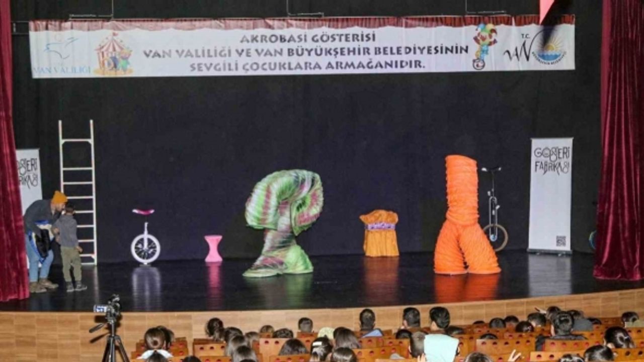 Van Büyükşehir Belediyesinin kültür sanat etkinlikleri kapsamında ilk ve ortaokul öğrencileri için düzenlediği akrobasi gösterisi büyük beğeni topladı.