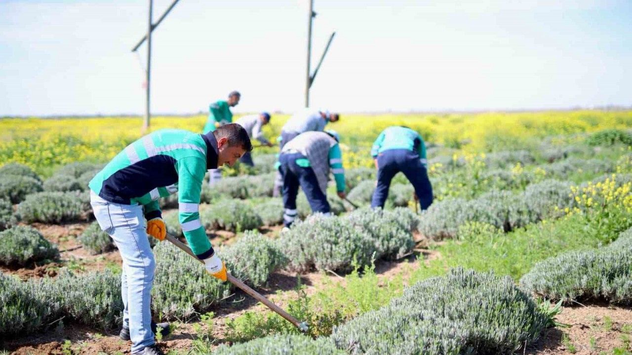 Aksaray’da belediye tarafından oluşturulan lavanta bahçesinin yaz döneminde görsel bir şölen oluşturması için bakımları yapıldı.