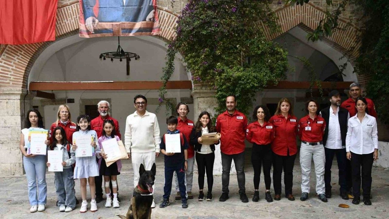 Haydi Gençler, Haydi Çocuklar AKUT ile El Ele’ Yarışması’nda dereceye giren çocuklara Belediye Başkan Vekili Tibet Özer, Kuşadası AKUT Ekip Lideri Tağmaç Saraçoğlu, Akut İkinci Başkanı Esra Üstünkaya ve Proje ve Kaynak Oluşturma Bölüm Sorumlusu Saliha Dönmez tarafından başarı belgeleri ve ödülleri verildi.