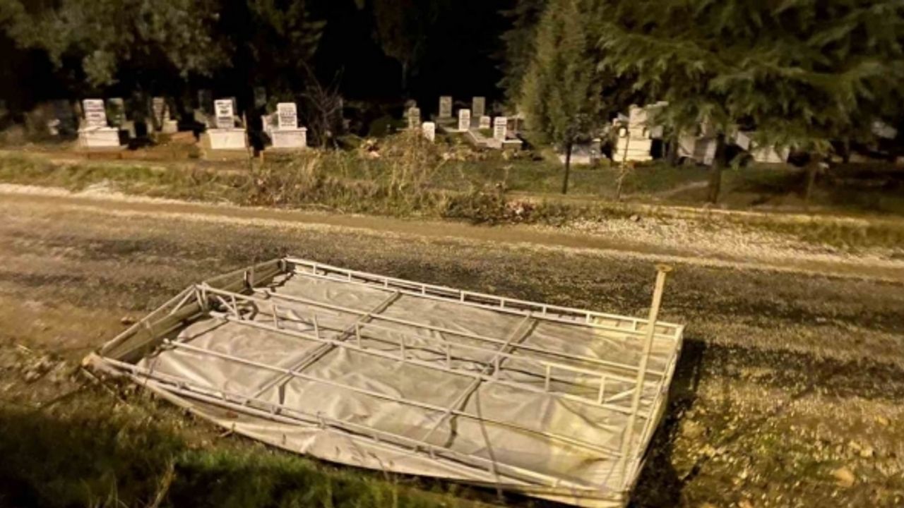 Manisa’nın Alaşehir ilçesinde şiddetli fırtına, prefabrik kulübenin çatısını uçurdu.