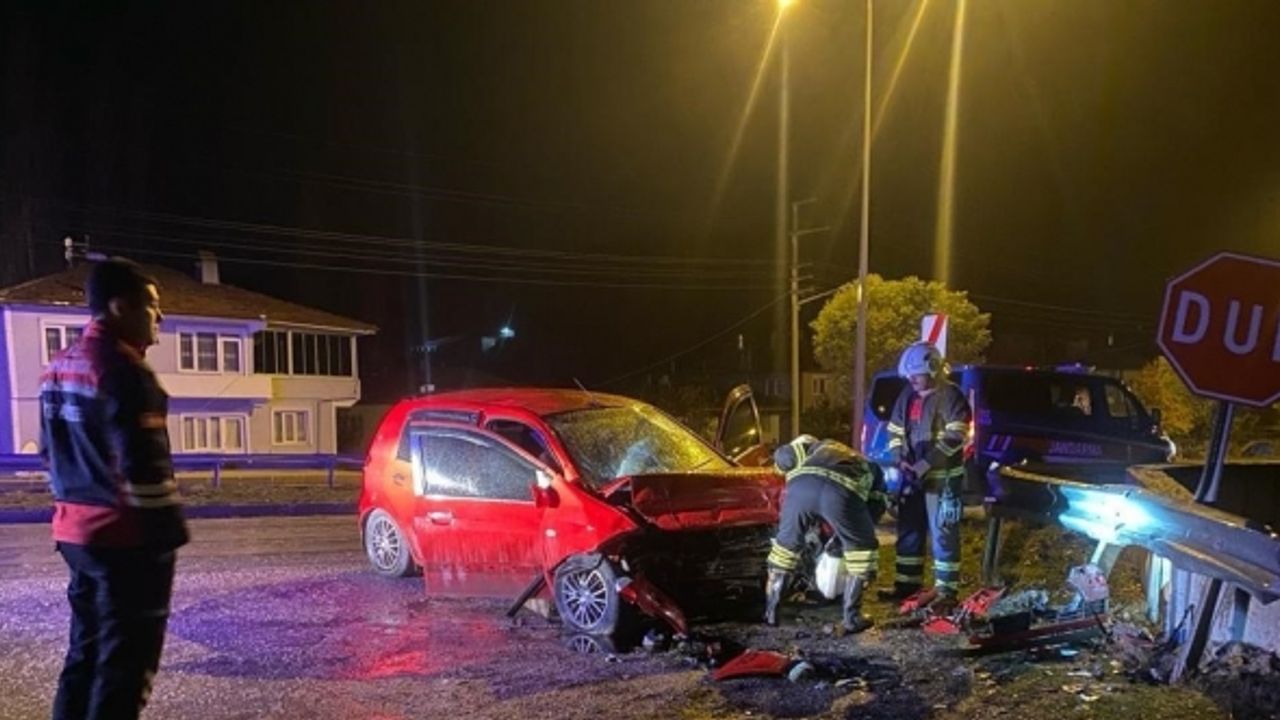Amasya’da kontrolden çıkarak bariyerlere çarpan otomobilin sürücüsü yaralandı.
