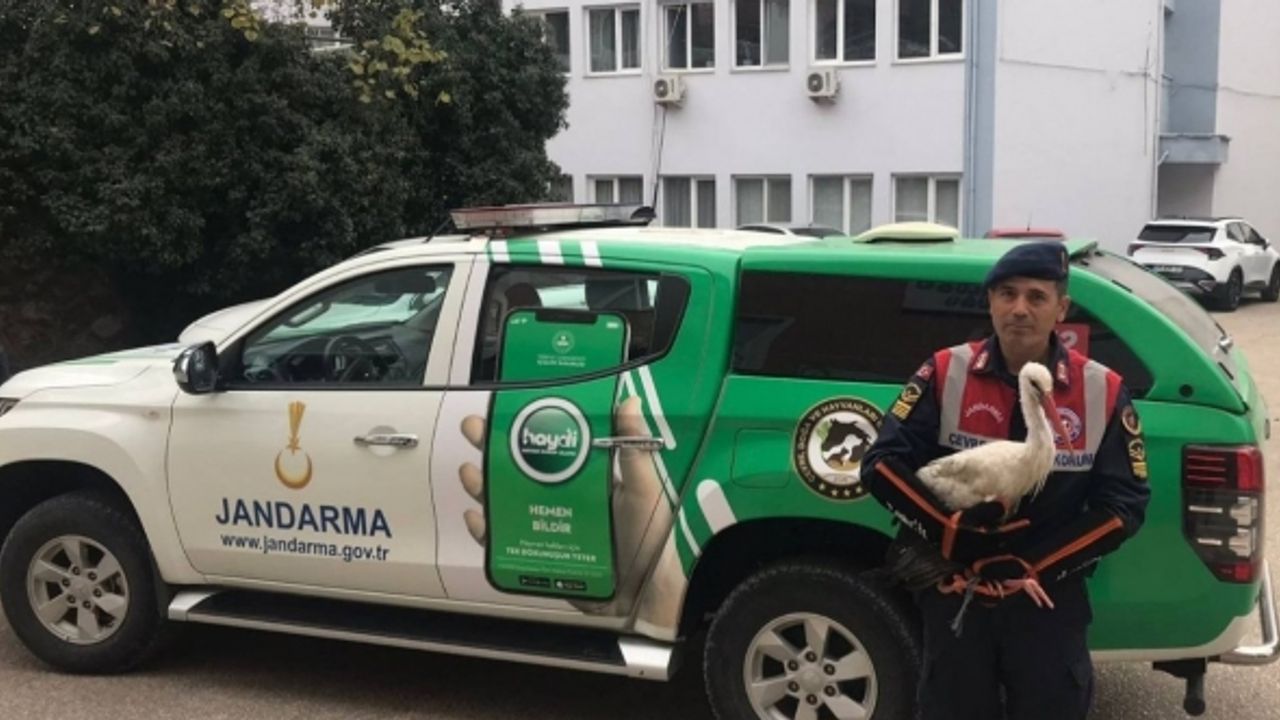 Amasya’da jandarma ekipleri, arazide bitkin ve yaralı halde buldukları leyleği tedavisi için doğa koruma ekiplerine teslim etti.