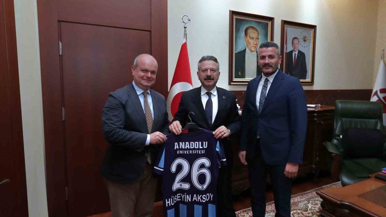 Anadolu Üniversitesi Spor Kulübü yönetimi, Eskişehir Valisi Hüseyin Aksoy’a ziyaret gerçekleştirerek, forma hediye etti.