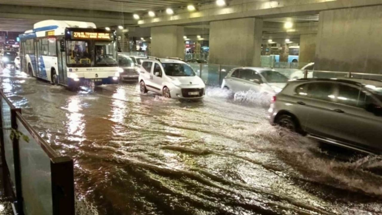 Ankara’da akşam saatlerinde başlayan sağanak yağış nedeniyle yolları su bastı, araçlar yolda kaldı.