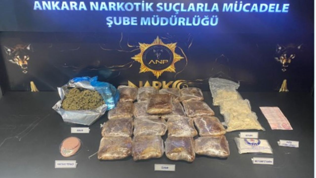 Edinilen bilgiye göre,’Narkogüç’ operasyonlarınca, Narkotik Suçlarla Mücadele Şube Müdürlüğü, Ankara genelinde operasyon düzenledi. Uyuşturucu madde ticaretinin önüne geçmek üzere 9 Mayıs Perşembe günü gerçekleştirilen operasyonda; 11 kilogram 501 gram esrar, 3 kilogram kokain, 440 gram metamfetamin, 1 adet hassas terazi ve 7 bin lira ele geçirilirken ’uyuşturucu uyarıcı madde ticareti yapma veya sağlamak’ suçu kapmasında 2 şüpheli ve ’uyuşturucu madde bulundurmak, kabul etmek ve satın almak’ suçu kapsamında ise 1 şüpheli gözaltına alındı. Gerekli işlemlerin tamamlanmasının ardından şüphelilerin adliyeye sevk edileceği öğrenildi.