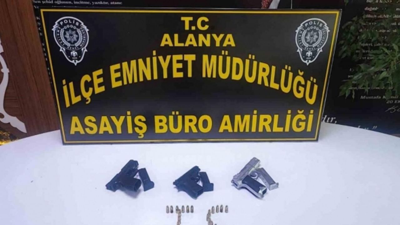 Alanya Cumhuriyet Başsavcılığı talimatıyla adresleri tespit edilen şüpheliler yakalandı. Şahıslara ait ev, araç ve işyerinde yapılan aramalarda ise 3 ruhsatsız tabanca, 25 fişek ile 3 boş kovan ele geçirildi.