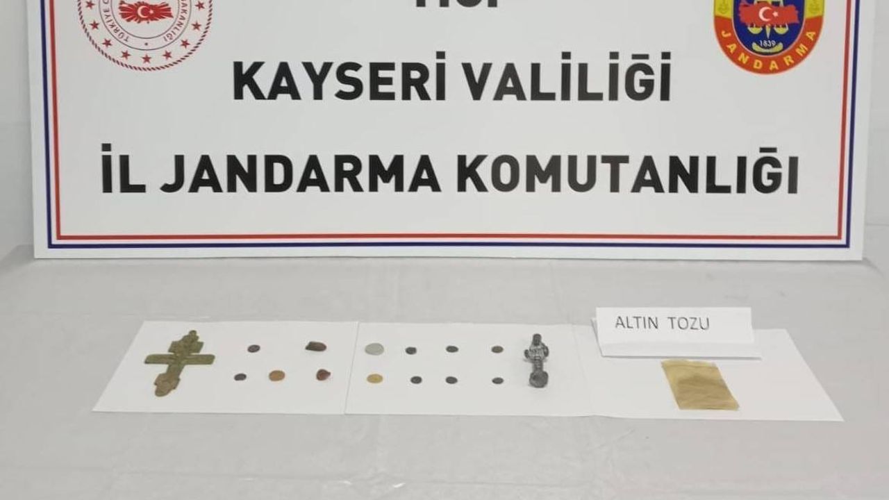 Kayseri İl Jandarma Komutanlığı İstihbarat Şube Müdürlüğü ve Melikgazi İlçe Jandarma Komutanlığı tarafından yapılan istihbari çalışmalar sonucunda Melikgazi ilçesine bağlı Hoca Ahmet Yesevi Bulvarı üzerinde bir araç durduruldu. Ekipler tarafından araçta ve sürücüsü H.K.’nin üzerinde yapılan aramalarda geçmiş dönemlere ait olduğu değerlendirilen 8 adet bronz, 1 adet gümüş, 1 adet altın olmak üzere toplam 10 adet sikke, 5 adet obje ve 20 gram altın tozu bulunu.
