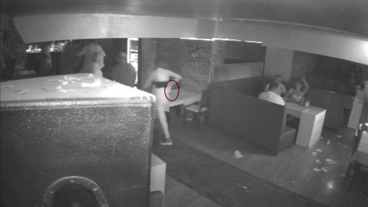 Yaşanan olay anı mekan içindeki güvenlik kamerası tarafından kaydedildi. Görüntülerde adamın giderken kadın tarafından arkadan bıçaklanması yer aldı. Görüntülerin devamında ise olay olurken mekandaki diğer kişilerin masada oturup eğlenceye devam ettikleri görüldü.