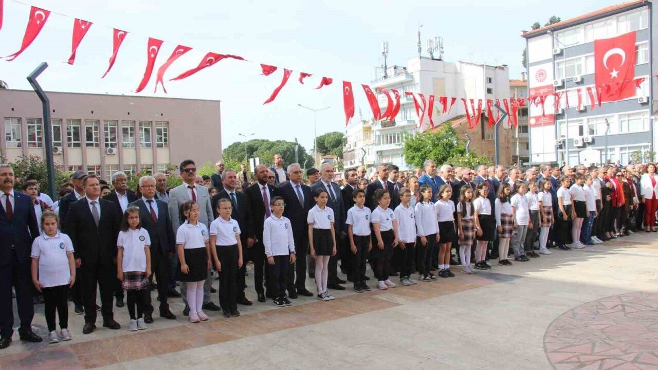 Aydın’da 23 Nisan Ulusal Egemenlik ve Çocuk Bayramı kutlamaları Aydın Valiliği önünde düzenlenen çelenk töreni ile başladı.