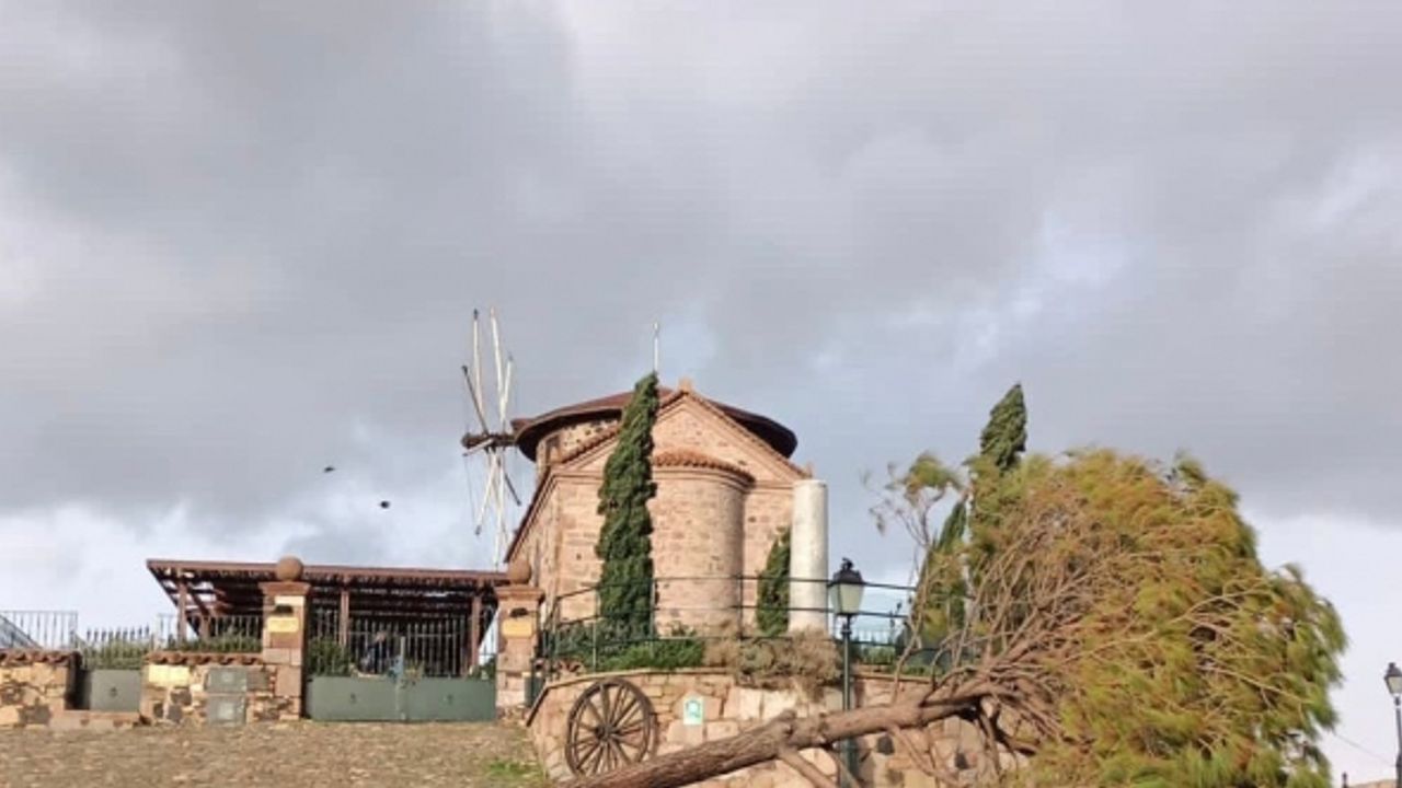 Cunda Adası sahilindeki işletmelerin tabelalarıyla kapı önlerindeki masa ve sandalyeleri uçuran fırtına nedeniyle adada bazı ağaçlar da devrildi.