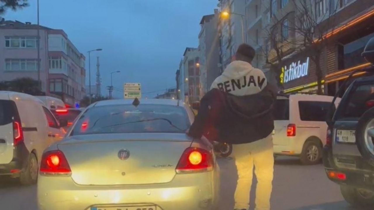 Bahçelievler’de patenli genç trafikte seyir halindeki araca tutunarak telefonla konuşarak ilerledi. Yürekleri ağza getiren tehlikeli yolculuğu kameraya yansıdı.