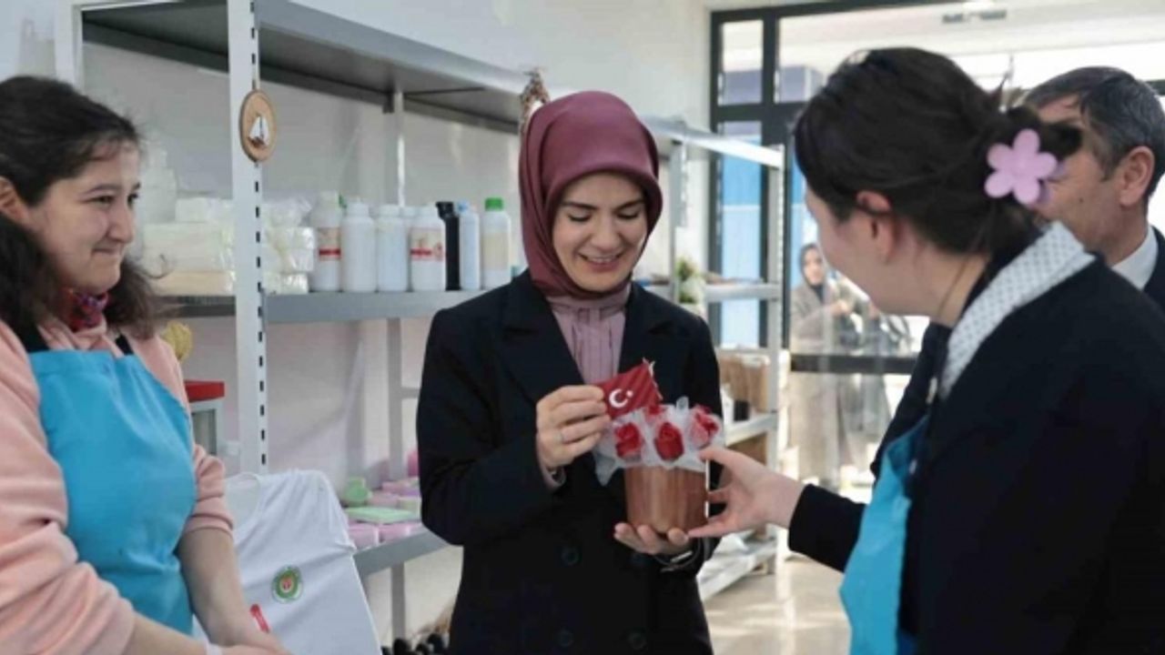 Aile ve Sosyal Hizmetler Bakanı Mahinur Özdemir Göktaş, ziyaret ettiği merkezde engelli kursiyerlerle mozaik yaptı, söyledikleri şarkılara eşlik etti.