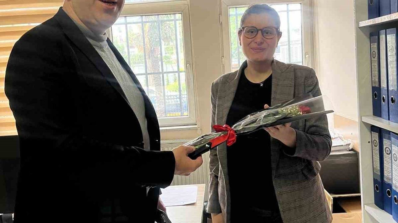 Bakırköy İlçe Emniyet Müdürü Necati Aktuğ Şahin, Anneler Günü dolayısıyla ilçede görev yapan kadın polisleri ziyaret edip çiçek taktim etti.