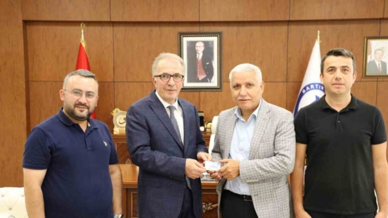 Bartınspor Kulüp Başkanı Kenan Dursun ve yönetim kurulu üyeleri, Bartın Üniversitesi (BARÜ) Rektörü Prof. Dr. Orhan Uzun’u ziyaret etti.