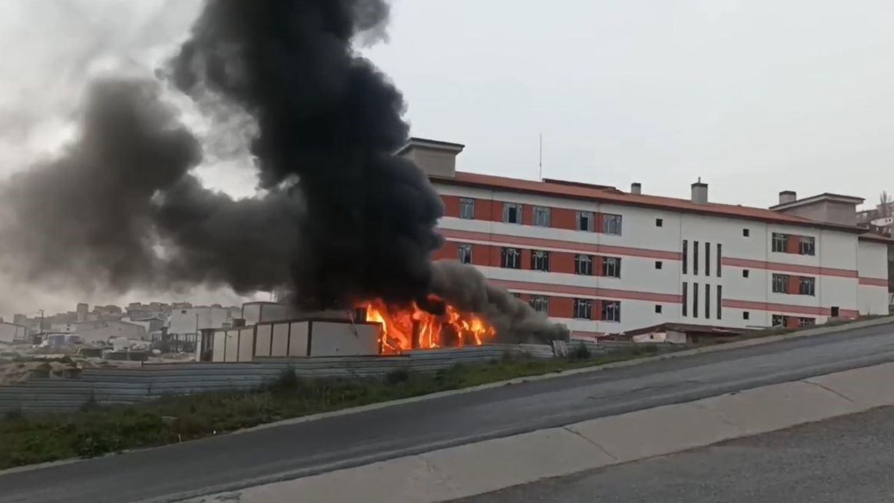 Başakşehir’de bulunan okul inşaatında işçilerin kaldığı konteynırda yangın çıktı. Konteynır kısa sürede alev topuna dönerken yangına polis TOMA’sı müdahale etti.