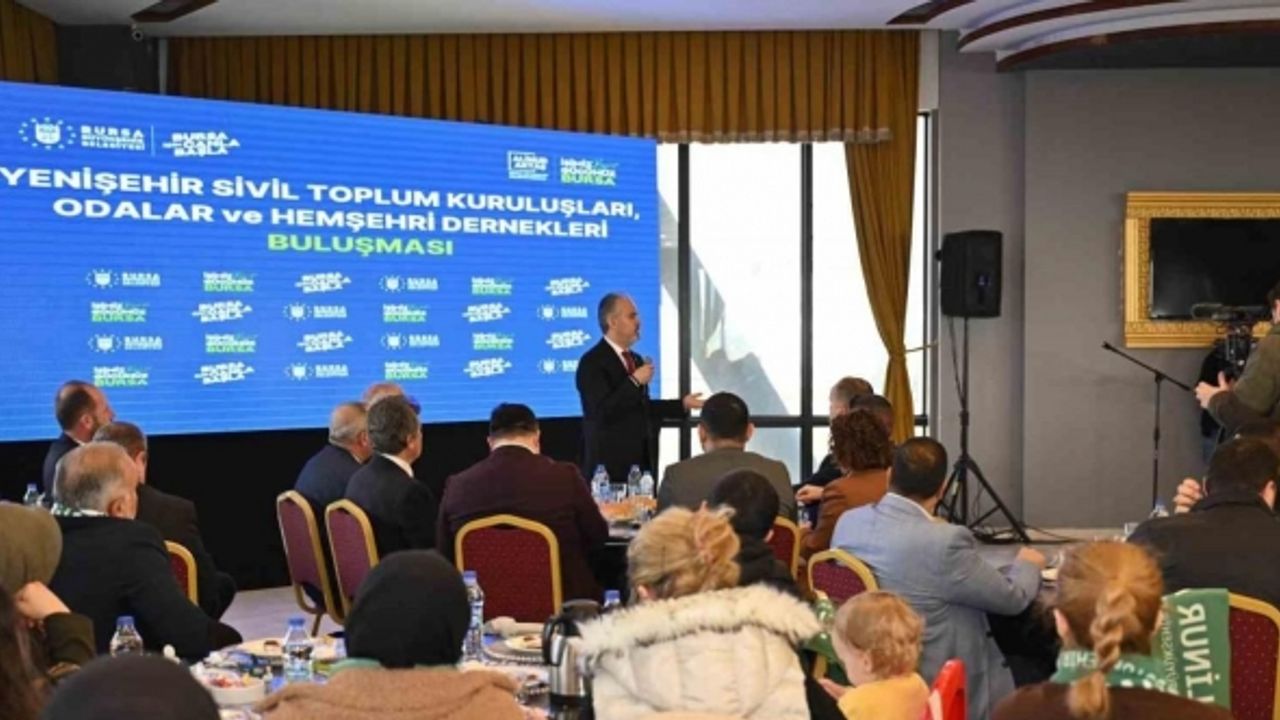 Bursa Büyükşehir Belediye Başkanı Alinur Aktaş, Yenişehir ilçesinde sivil toplum kuruluşları, meslek odaları, hemşehri dernekleri temsilcileri ve muhtarlar biraraya geldi. İmren Izgara Düğün Salonu’ndaki toplantıya, Başkan Alinur Aktaş’ın yanı sıra Yenişehir Belediye Başkanı Davut Aydın, AK Parti İlçe Başkanı Mehmet İleri, MHP İlçe Başkanı Arif Eren, Yenişehir Belediyesi eski Başkanı Süleyman Çelik, siyasi parti temsilcileri ve meclis üyeleri de katıldı.