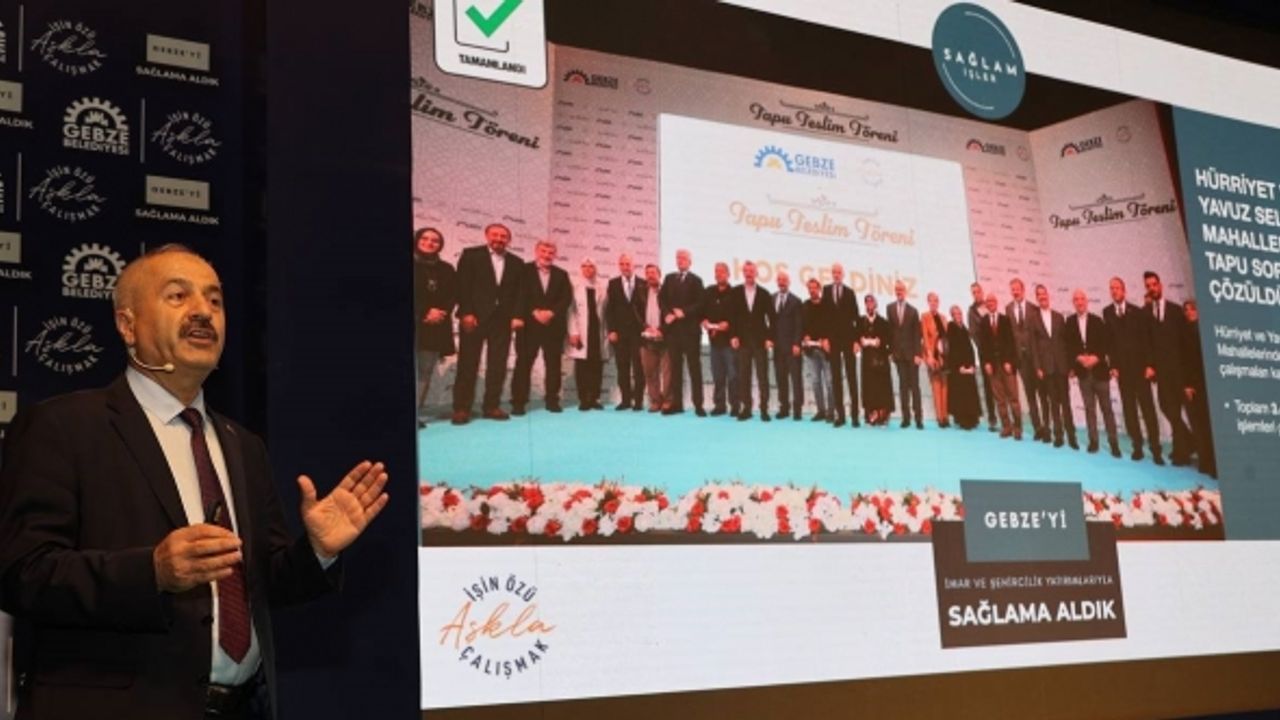 Gebze Belediyesi’nin 2019-2023 yılları arasındaki çalışmalarının anlatıldığı toplantı, Osman Hamdi Bey Kültür Merkezi’nde düzenlendi. Gebze Belediye Başkanı Zinnur Büyükgöz’ün yaptığı açılış konuşmasıyla başlayan toplantıda, sinevizyon eşliğinde yapılan sunum 8 başlık altında gerçekleştirildi. Zinnur Büyükgöz, imar ve şehircilik, ulaşım ve altyapı, üstyapı, eğitim gençlik ve spor, çevre, sosyal belediyecilik, kültür ve sanat, dijital belediyecilik hizmet ve yatırımlarını anlattı.
