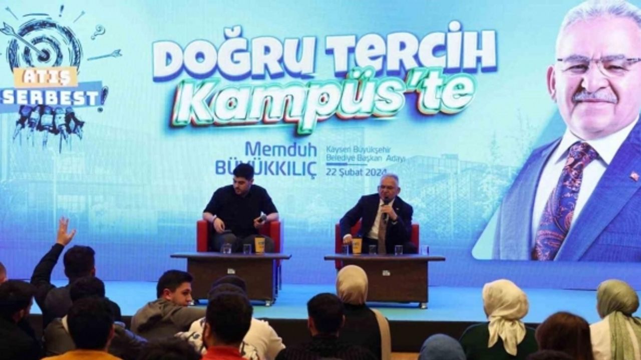 Kayseri Büyükşehir Belediye Başkanı Dr. Memduh Büyükkılıç, ’Doğru Tercih Kampüs’te’ programında gençlerle bir araya geldi. Gençlerle tecrübelerini, hizmetlerini ve projelerini paylaşan Başkan Büyükkılıç, öğrencilerin taleplerini ve sorularını da samimiyetle cevapladı.