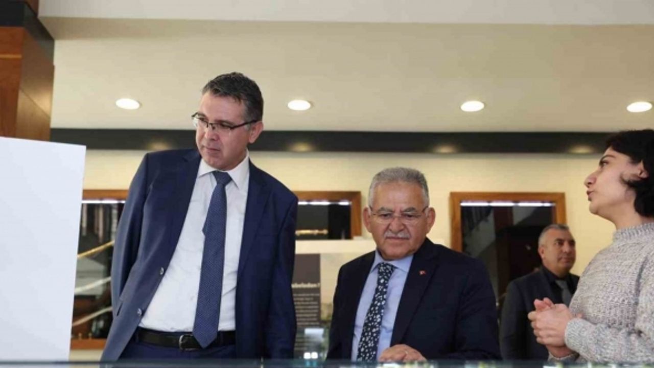 Kayseri Büyükşehir Belediye Başkanı Dr. Memduh Büyükkılıç, Kayseri Bölge Adliye Mahkemesi Başsavcısı Burhan Bölükbaşı’yı makamında ağırlayarak, Büyükşehir Belediyesi Fuaye Alanı’nda sergilenen 7,5 milyon yıllık fosiller hakkında Bölükbaşı’ya bilgiler verdi.