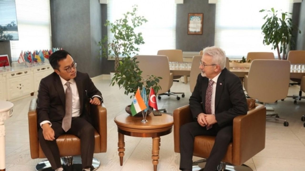 Ziyaret sonunda Başkan Erdem, Hindistan İstanbul Başkonsolosu Shri Mijito Vinito’ya günün anısına hediye verdi.