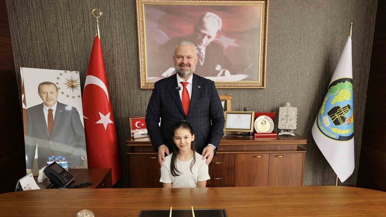 Koltuğunu devreden Başkan Aydın Pehlivan, Aybüke Kara’ya, “Kader gayrete aşıktır. Sizler çok çalışarak, bu ülkenin yarınları olacaksınız. Bizlerin ortaya koyduğu her hizmeti, ülkemize ve insanlığa daha da geliştirerek yayacaksınız. İstiklalimizin kurtarıcısı ve Cumhuriyetimizin Kurucusu Ulu Önder Gazi Mustafa Kemal Atatürk nasıl ki çocukların önemini ve yarınları görerek, çalışmalarını bu doğrultuda yaptıysa, biz de en büyük yatırımımızı çocuklarımız ve gençlerimiz için yapıyoruz. Eğitim desteklerimiz, kütüphanelerimiz, çocuk köyümüz ve nice hizmetimizle, yarınımız olan evlatlarımızın hizmetindeyiz” dedi.