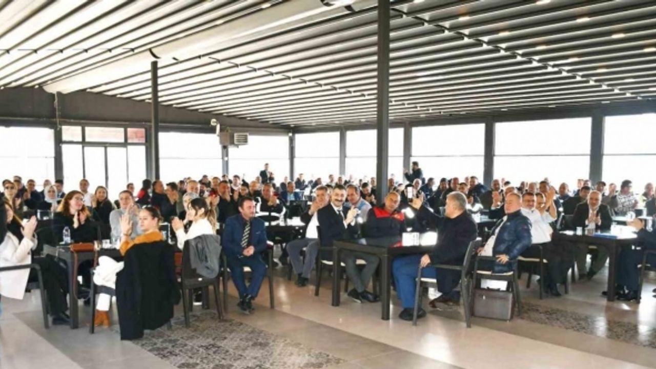 Programda işçilere hitaben bir konuşma yapan Belediye-İş Sendikası Zonguldak Şube Başkanı Osman Karataş; ‘Bugüne kadar her zaman işçisinin yanında olan Belediye Başkanımız Sayın Nuri Tekin’e teşekkür ediyorum. Yaptığımız her sözleşmede imkânlar dâhilinde işçimize en yüksek maaşı vermeye özen gösterdiler. Başkanımız her zaman bizim yanımızda oldu. Bizde zamanı geldiğinde başkanımızın yanında olacağız. Ek protokolümüzün işçilerimize ve Belediyemize hayırlı olmasını temenni ediyor, işçiden yana olan işçi dostu Belediye Başkanımıza ve ekibine tekrar teşekkür ediyorum’ dedi.