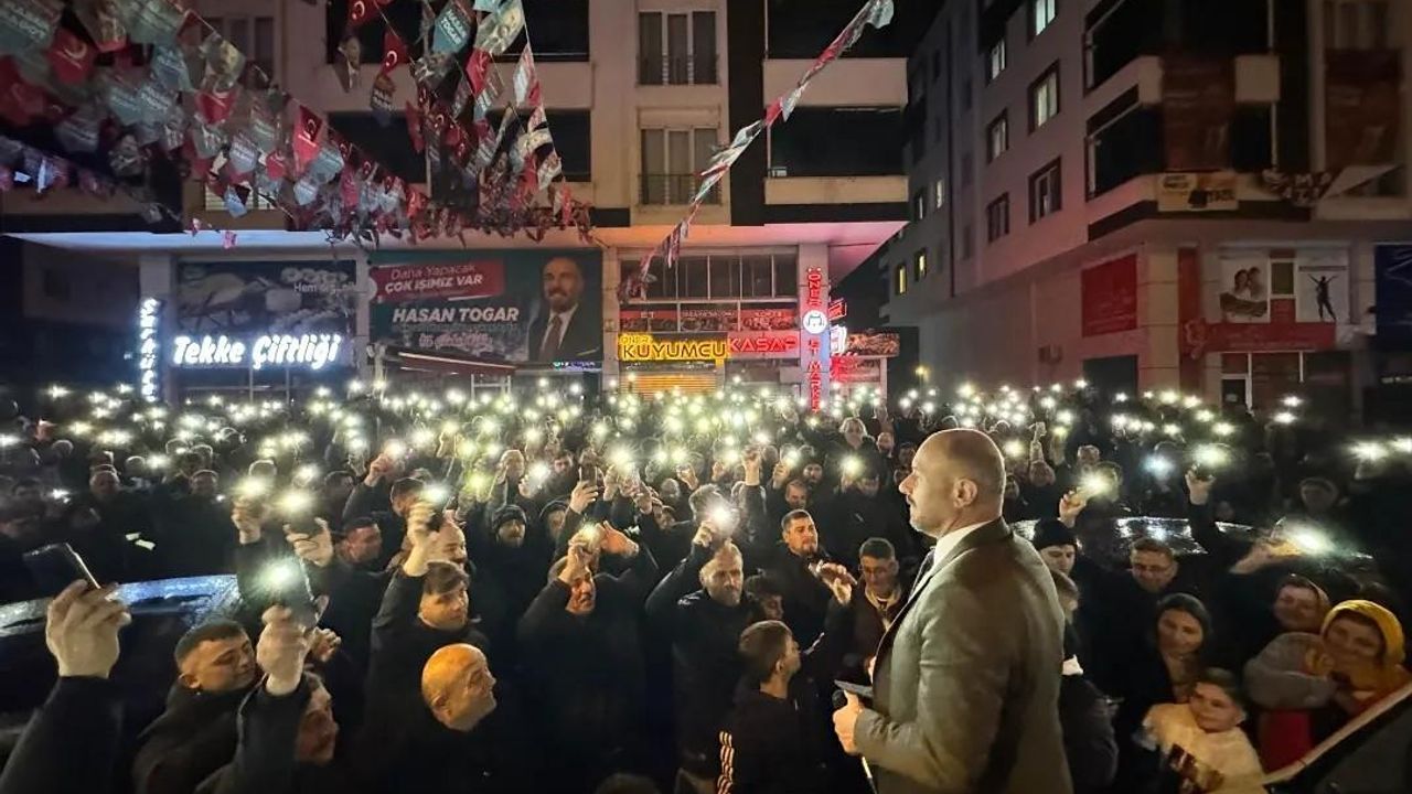 Togar ilçeyi karıştırmak isteyenlere rağmen nezaketle bir seçim kampanyası yürüttüklerini söyleyerek, “Tekkeköy’ün geleceğine sahip çıkıyorsunuz. Sizlerle gurur duyuyorum. Emin olun bir tarih yazıyorsunuz. Türkiye’nin okuyacağı bir sevda hikayesi yazıyorsunuz. Bir aşk hikayesi yazıyorsunuz. Hepinizden Allah razı olsun. Şımarmadan şaşırmadan irademize ipotek koydurmadan yolumuza devam edelim. Son sözü yine halkımız söyleyecek” şeklinde konuştu.