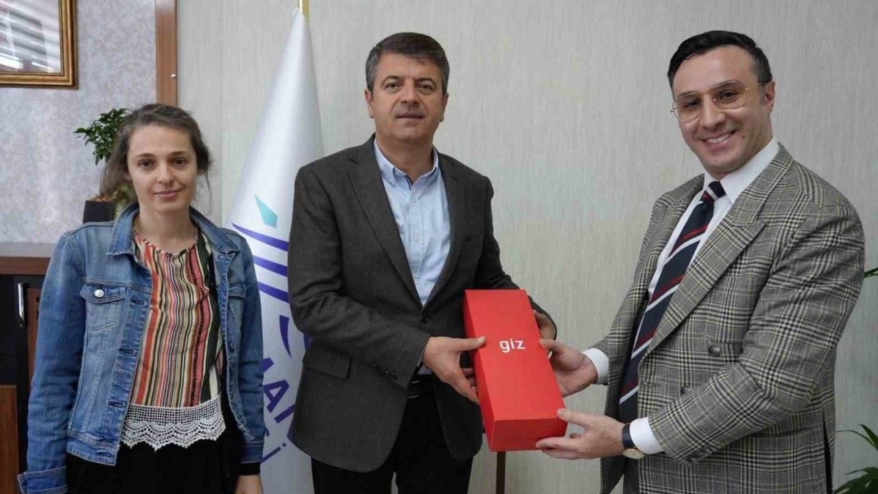 Adıyaman Belediyesi ile Alman Uluslararası İşbirliği Kurumu (GIZ) tarafından yürütülen ’Dirençli kentler ve toplum projesi’ kapsamında projeden sorumlusu Candost Aydın ve Dr. Pınar Çobanyılmaz, Belediye Başkanı Abdurrahman Tutdere’yi ziyaret etti.