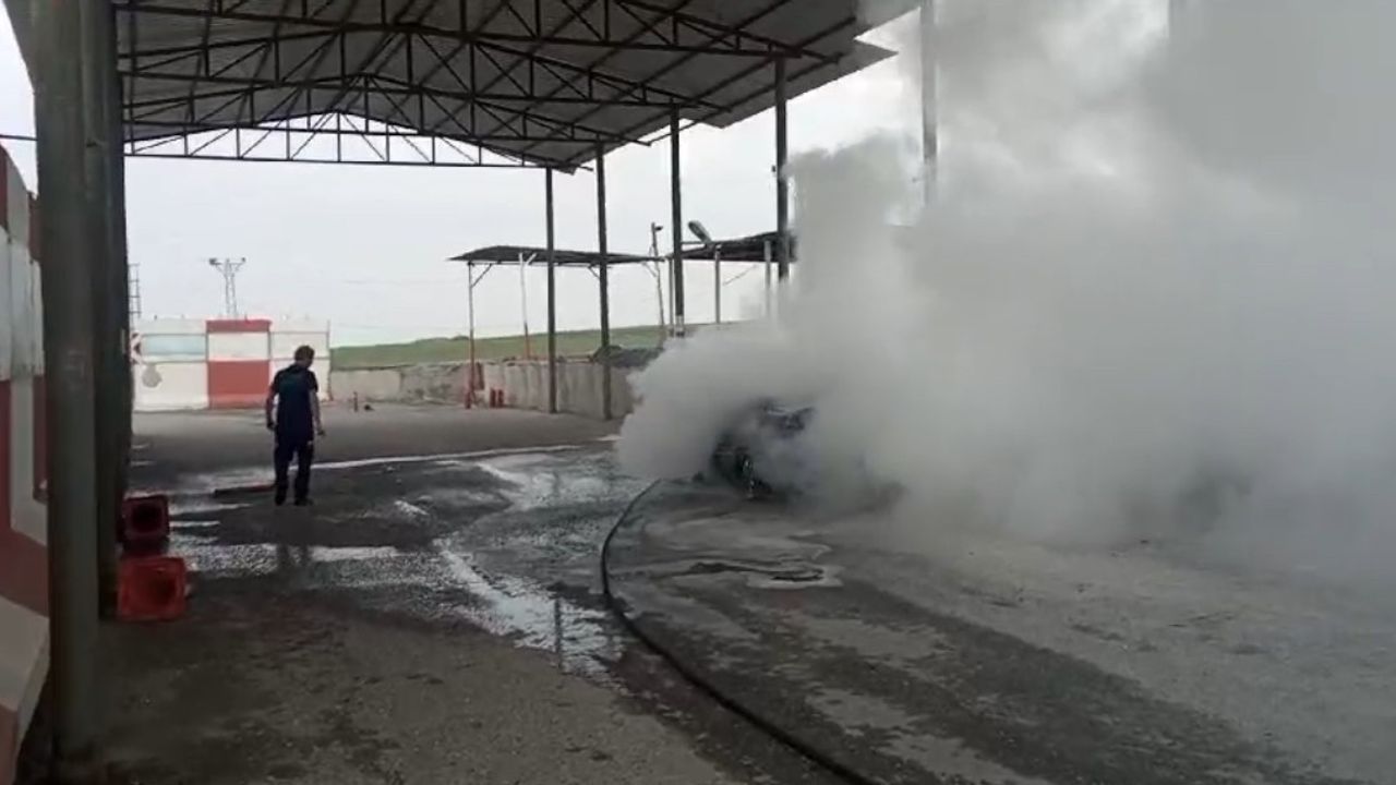 Batman’da jandarma arama noktasına gelen bir otomobil alev alev yandı.