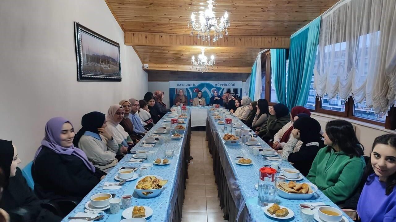Bayburt Müftülüğü, KYK yurtlarında kalan üniversite öğrencilerine iftar yemeği verdi. Müftülükte düzenlenen iftar programına Müftü Yardımcısı Fatma Tuba Altın, vaizler Saliha Yaşaroğlu, Hacer Dursun ve üniversite öğrencileri katıldı.