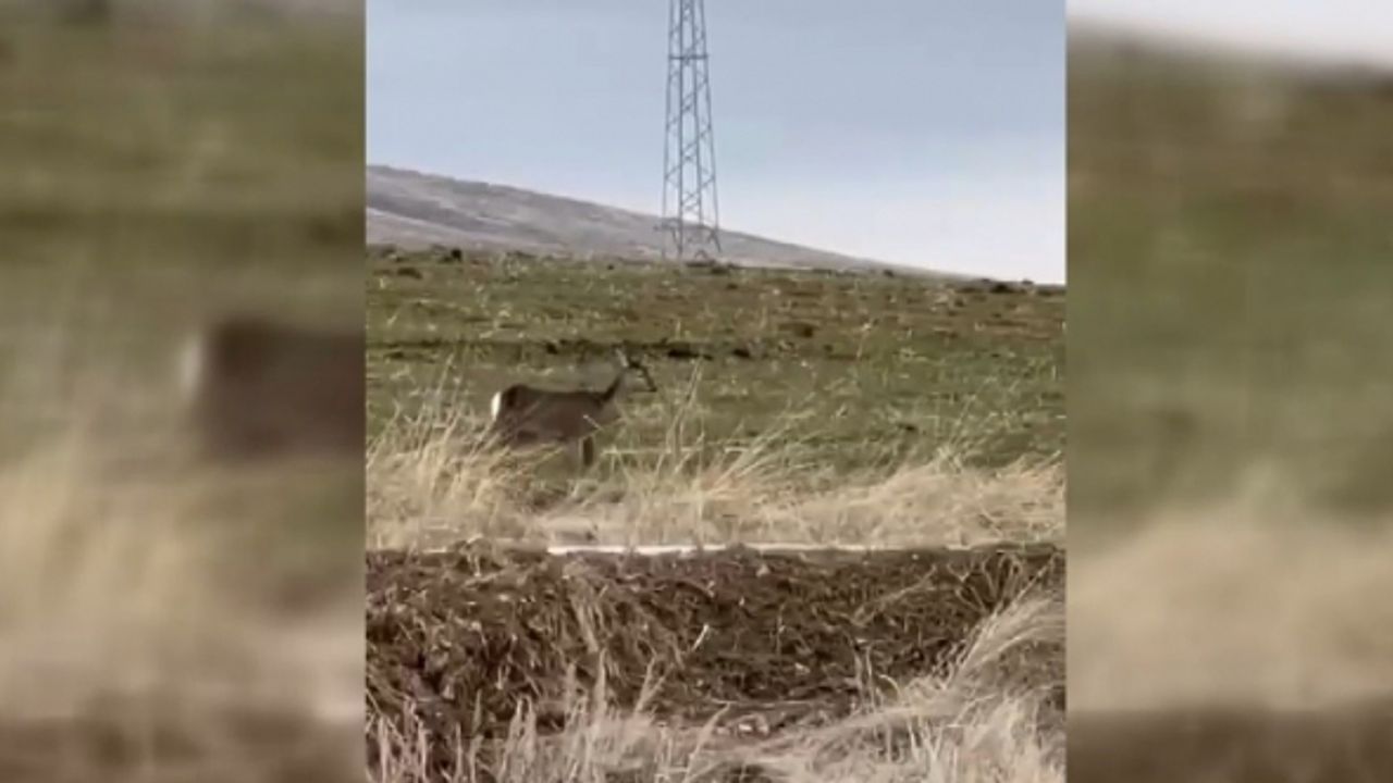 Kısa bir süre görüntülenen karaca daha sonra koşarak uzaklaştı.