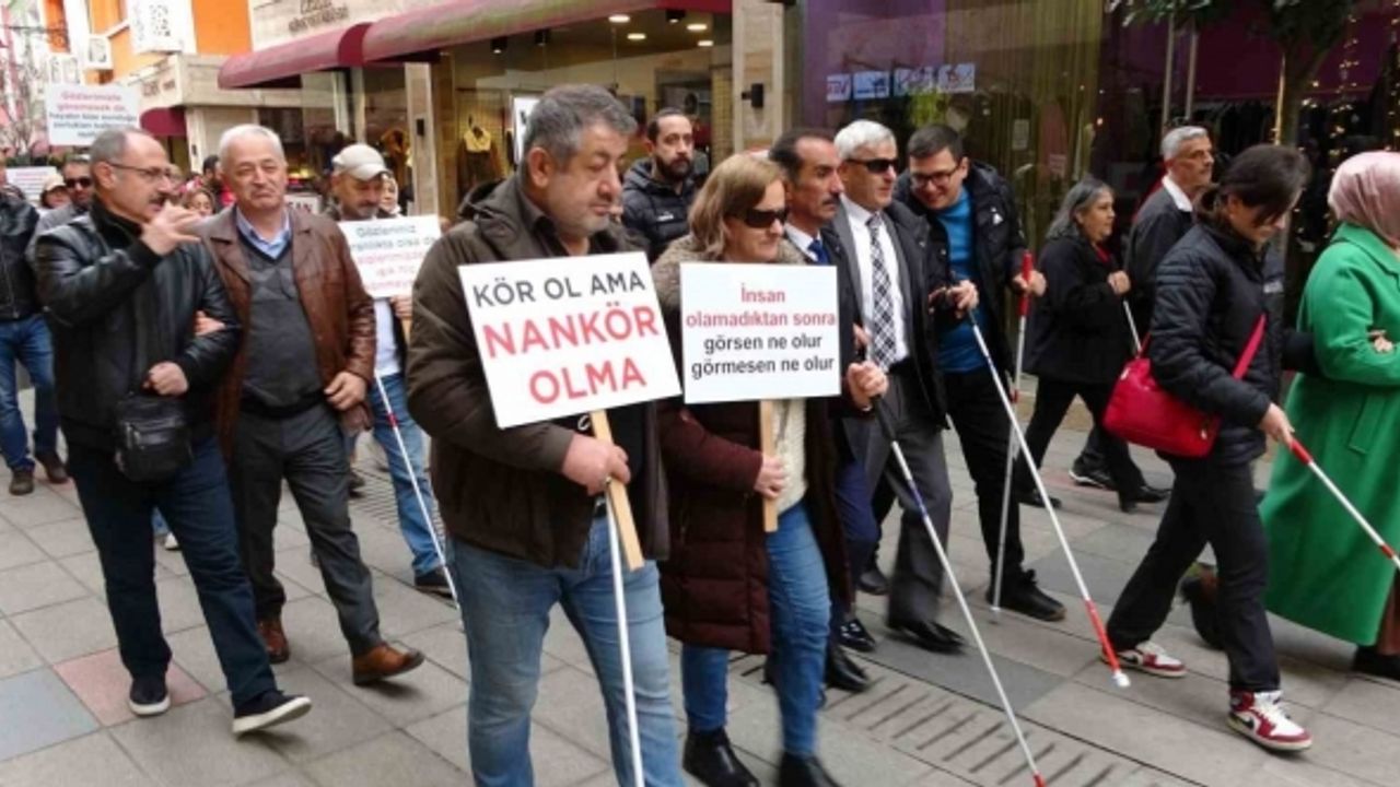 Ordu’da görme engelli vatandaşlar, beyaz bastonları ve ellerindeki pankartlar ile yürüyüş gerçekleştirdi.
