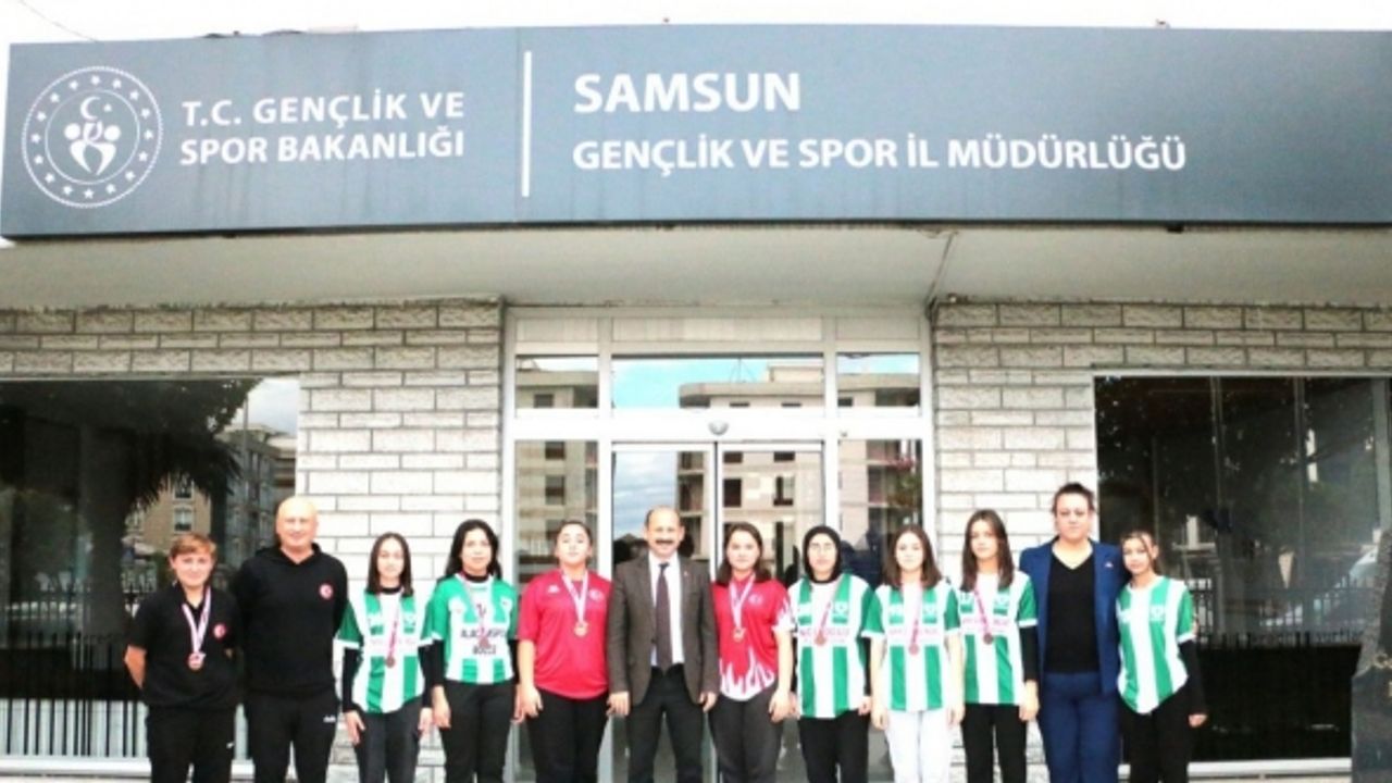 Yakın zamanda Antalya Kemer’de yapılan Uluslararası Bocce Turnuvası’nda Türk Milli Takımı ile şampiyon olan Alaçamspor Bocce Takımı sporcusu Merve Deniz, Bocce 2. Lig’de takım halinde şampiyon olan Büşranur Uzun, Demet Şahin ve bowling il üçüncülüğü alan bowling takımı sporcuları Ezgi Akay, Aleyna Kapusuz, Esra Şahin, Edanur Kır, Özlem Saka, Melek Ünlü ile beden eğitim öğretmeni Bocce Milli Takım Antrenörü Gökhan Bozdemir, Alaçam İlçe Gençlik Spor Müdürü Cansu Keskin Karaaslan ile birlikte Samsun Gençlik ve Spor İl Müdürü Feyzullah Dereci’yi makamında ziyaret etti.