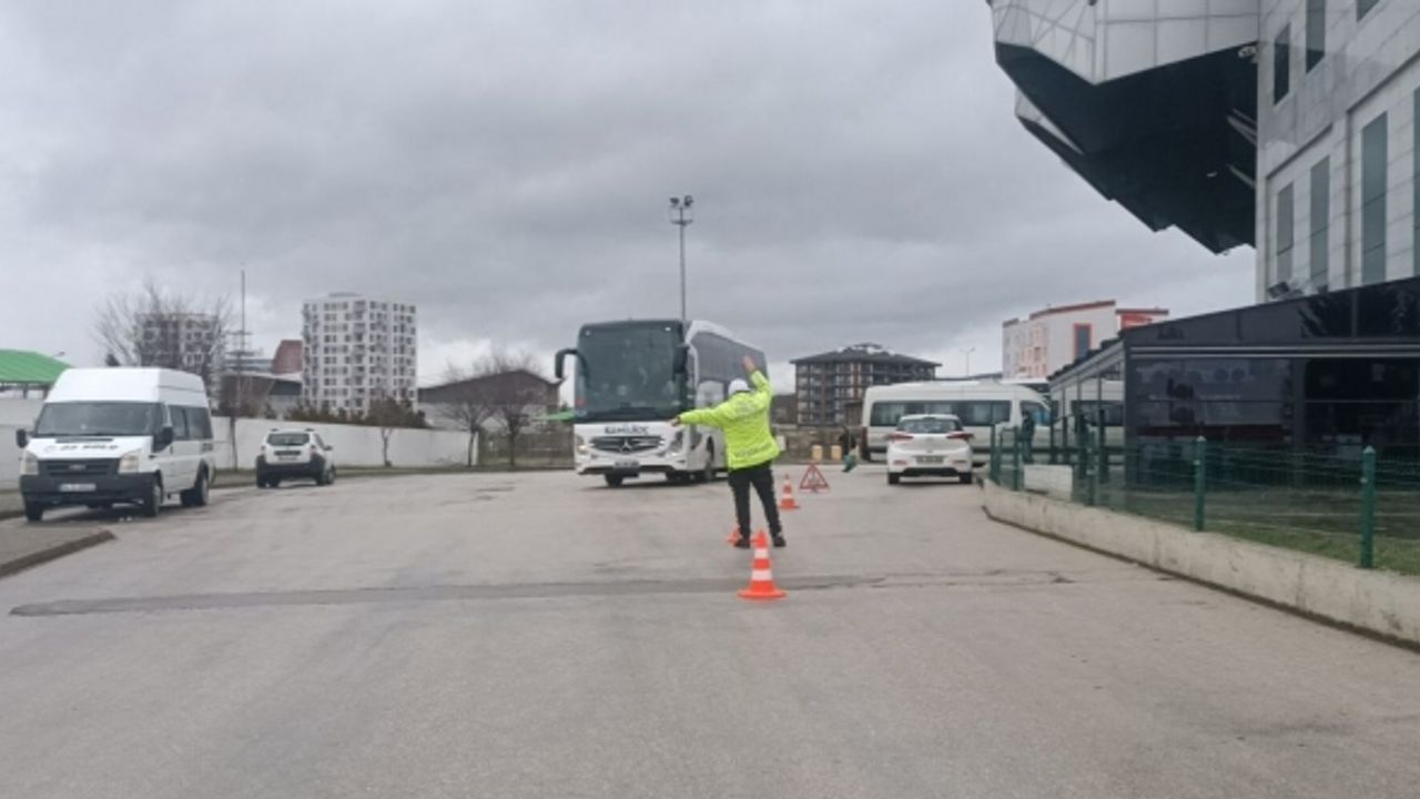 Bolu’da trafik ekipleri tarafından Şehirlerarası Otobüs Terminali’nde yolcu otobüslerine yönelik kış lastiği uygulaması yapıldı.