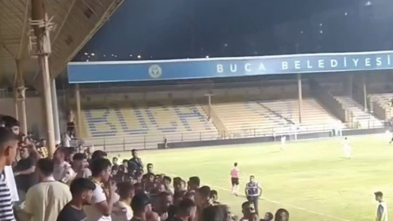 Bucaspor 1928 ile Nazilli Belediyespor arasında oynanan müsabakada sarı-lacivertli taraftarlar birbirine girdi.