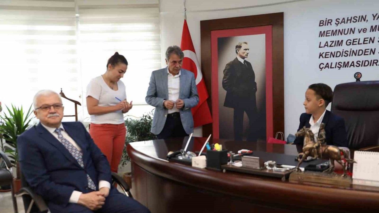 Can Kuyumcu’nun heyecanına ortak olan Belediye Başkanı Ali Kemal Deveciler yapmış olduğu konuşmada, “Öncelikle evladımıza öğrenim hayatında başarılar diliyor ve nice güzel makamlarda olmasını temenni ediyorum. Bu güzel ziyaretlerinden dolayı hem ilçe milli eğitim müdürlüğümüze hem de evladımız Can’a çok teşekkür ediyorum. Bugün temsil olarak devrettiğimiz makamımızda oturan bu güzel yavrumuzun gelecekte en iyi yerlerde olmasını ve nice güzel büyük başarılar elde etmesini diliyorum. Bu vesile ile tüm çocuklarımızın 23 Nisan Ulusal Egemenlik ve Çocuk Bayramı’nı kutluyorum,” ifadelerini kullandı.