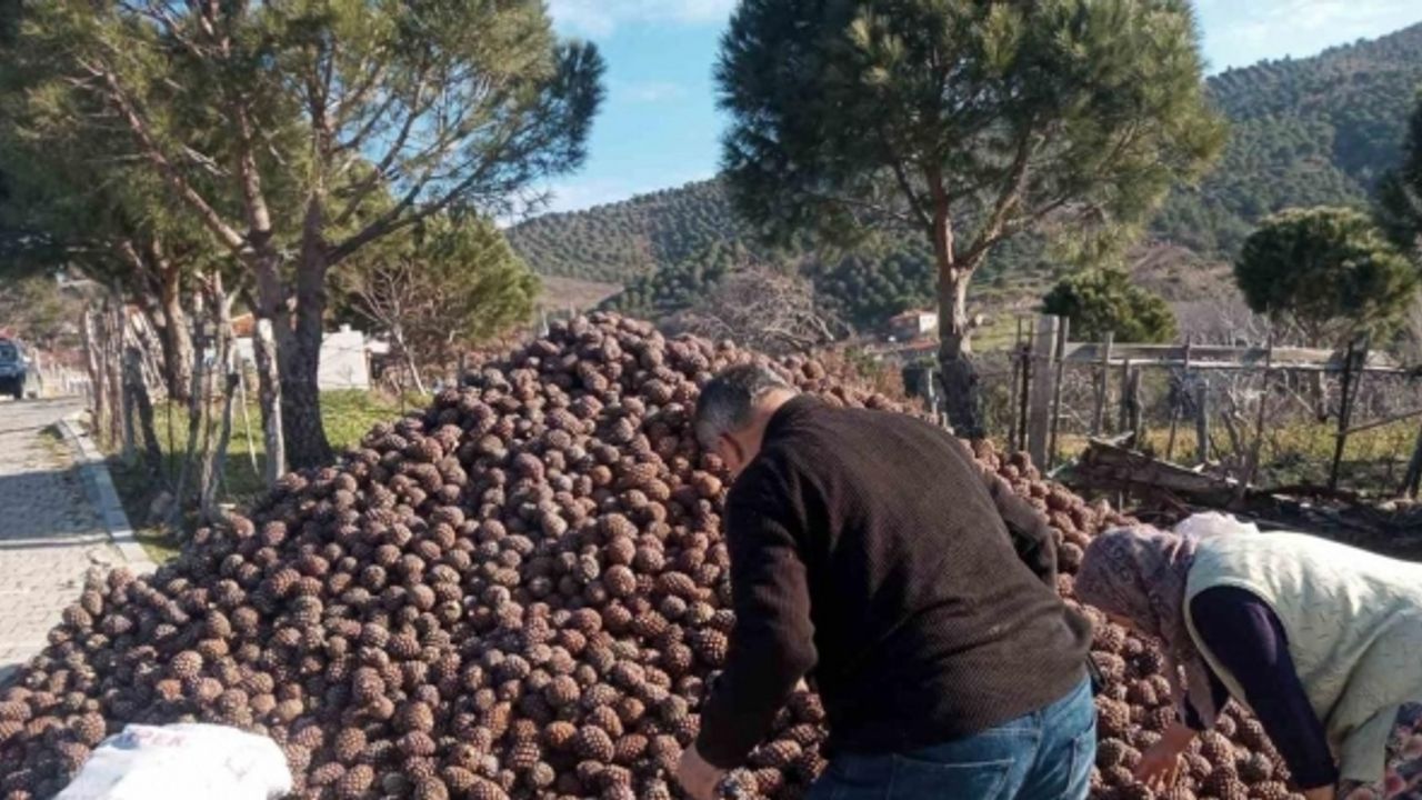 Burhaniye ilçesinde, kırsal Kırtık Mahallesinde fıstıkçamı kozalağı hasadı tamamlandı. Bu yıl, yörede kozalak rekoltesinin iyi olduğu açıklandı.