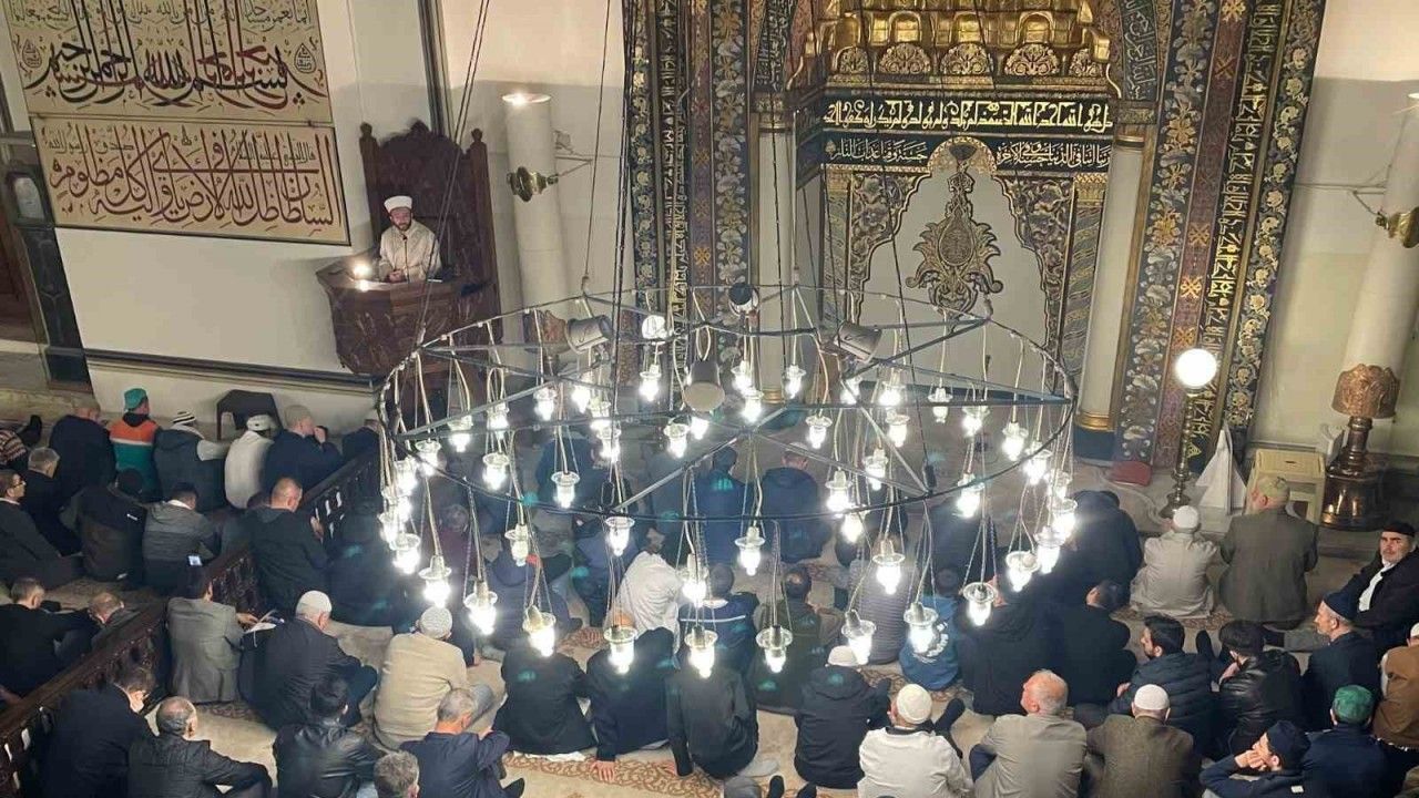 Camii içerisinde yer bulabilmek için saatler öncesinden Ulu Cami’ye gelen vatandaşlar, avluyu ve çevresini tamamen doldurdu.