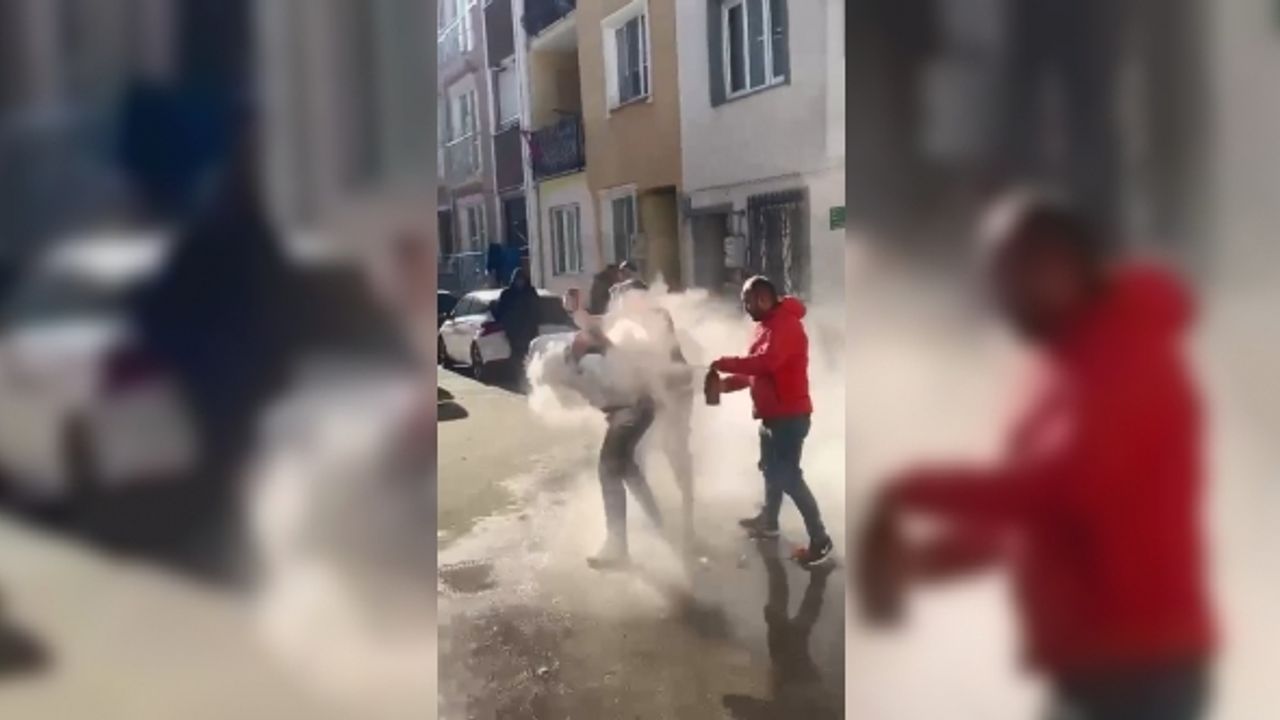 Merkez Osmangazi ilçesi Demirtaş Cumhuriyet Mahallesi’nde dünya evine girmek içi hazırlanan damat arkadaşlarının adet geleneği sınavında başına gelmeyen kalmadı. Çeyiz almaya gelen damada arkadaşları önce unlanarak kafasından yumurtalar kırıldı. Daha sonra ise yangın tüpüyle sınav devam ederken ilginç adet geleneği cep telefon kamerasına yansıdı.
